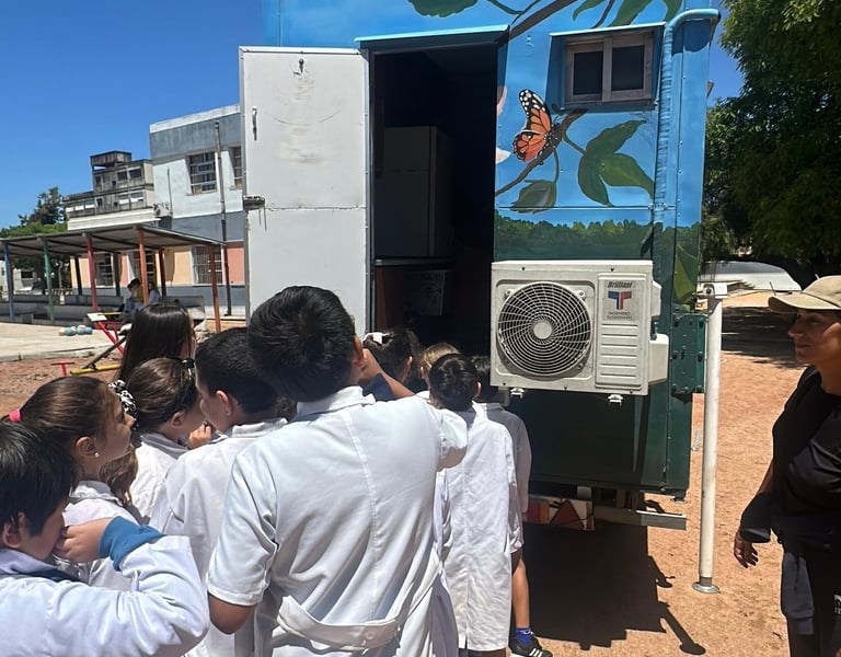 Inspirados por Educamper Chile y Biogold, creamos la primera aula móvil de educación ambiental que se propulsa con aceite vegetal usado en Uruguay, gracias a una alianza con las empresas uruguayas Bionexo - GAU con el objetivo de visitar a más de 150 centros educativos de todo el pais que ya estan participando del programa ¨Guardianes del Planeta¨.